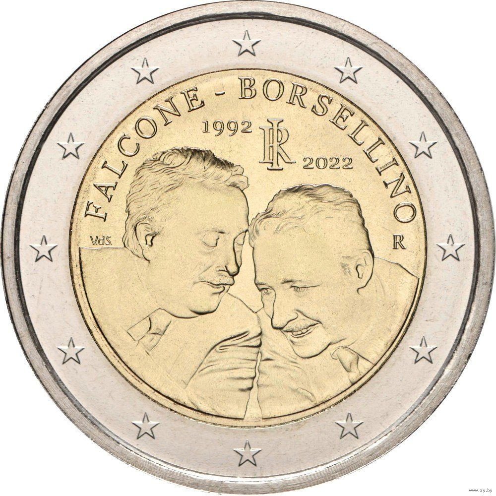 2 евро 2022 Италия Джованни Фальконе и Паоло Борселлино UNC из ролла