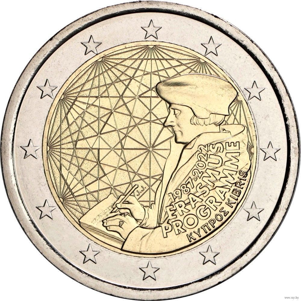 2 евро 2022 Кипр 35 лет программы Erasmus UNC из ролла