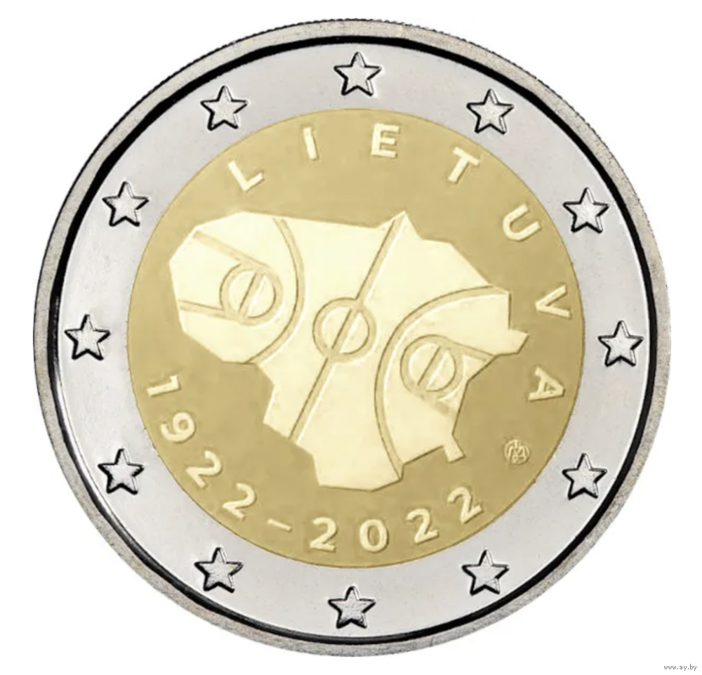 2 евро 2022 Литва 100-летие баскетбола в Литве UNC из ролла