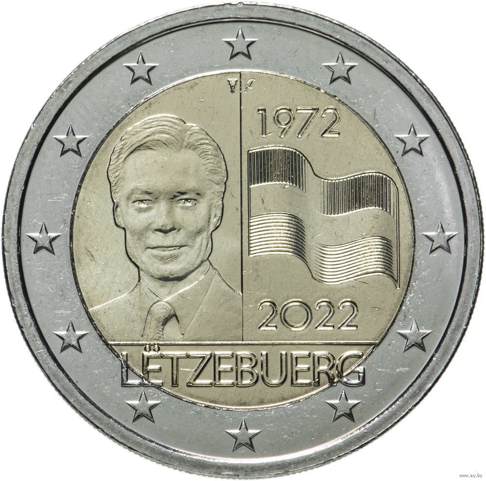 2 евро 2022 Люксембург 50 лет Флагу Люксембурга UNC из ролла