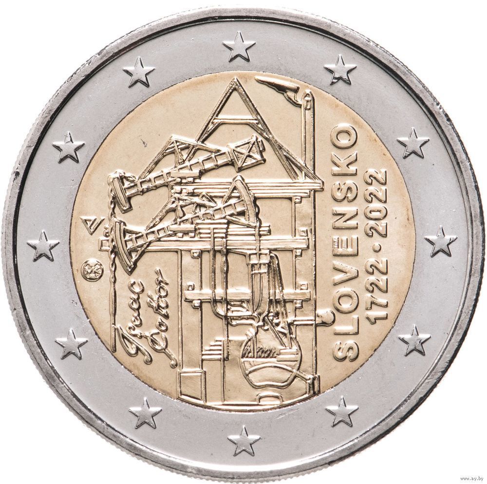 2 евро 2022 Словакия 300 лет первой паровой машине для шахт UNC из ролла