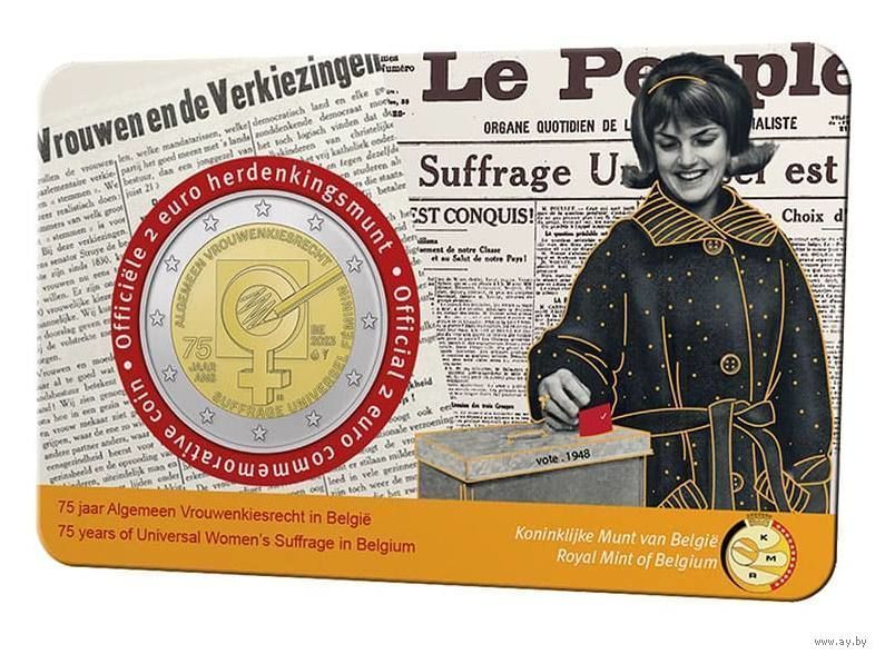 2 евро 2023 Бельгия 75 лет избирательного права женщин блистер BU