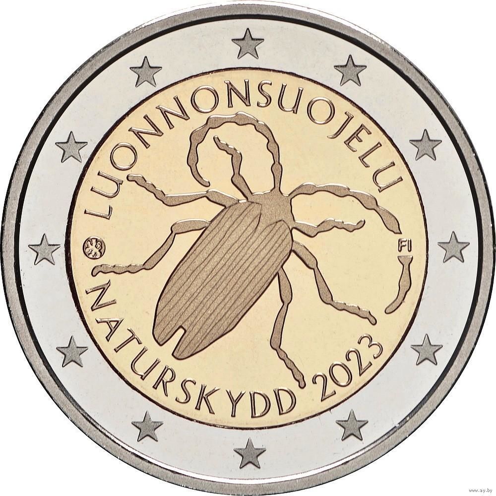 2 евро 2023 Финляндия 100 лет Первому закону Финляндии об охране природы Жук UNC из ролла
