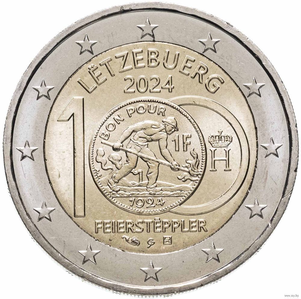 2 евро 2024 Люксембург 100 лет монетам с изображением литейщика UNC из ролла