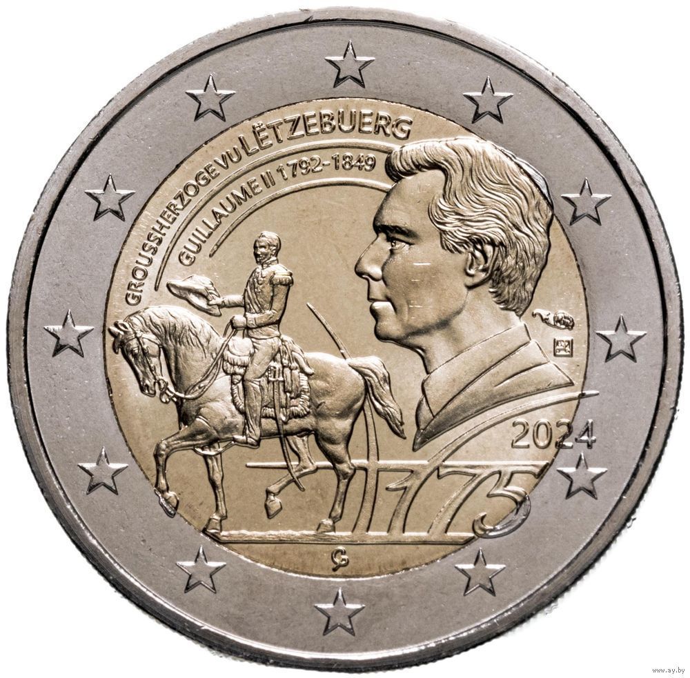 2 евро 2024 Люксембург 175 лет со дня смерти Великого Герцога Люксембурга Виллема II UNC из ролла