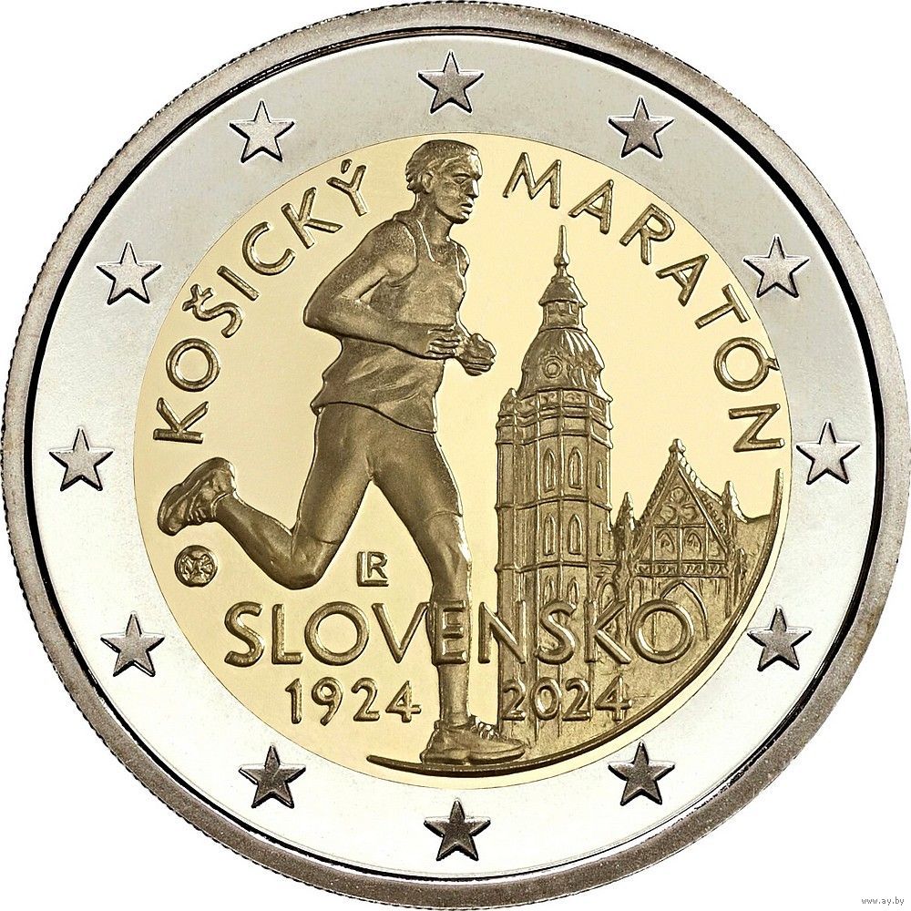 2 евро 2024 Словакия 100 лет Кошицкого марафона UNC из ролла