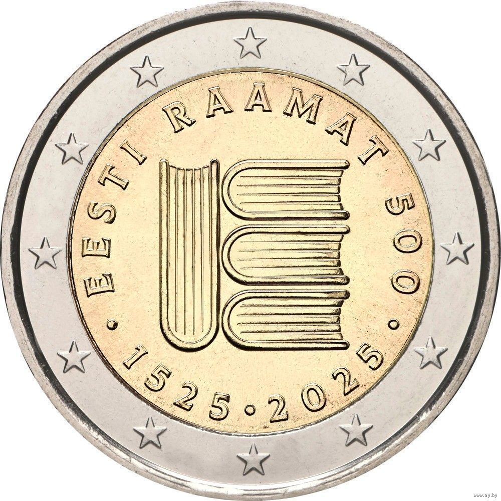 2 евро 2025 Эстония 500 лет первому печатному тексту UNC из ролла