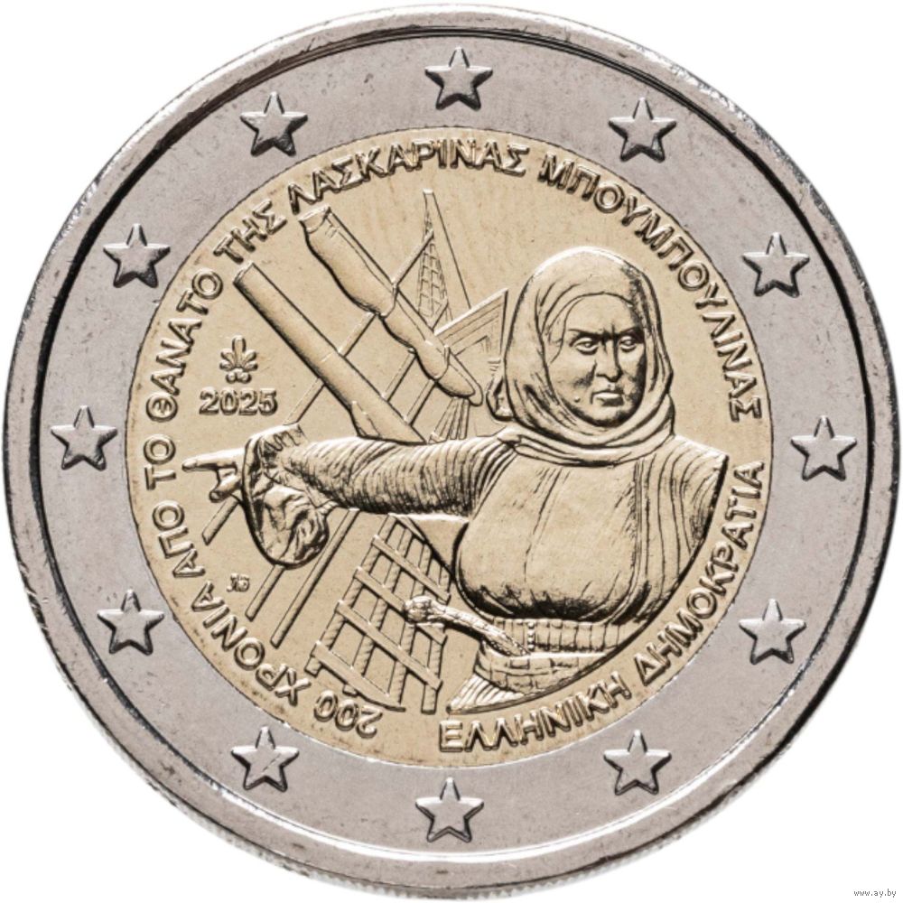 2 евро 2025 Греция Ласкарина Бубулина UNC из ролла