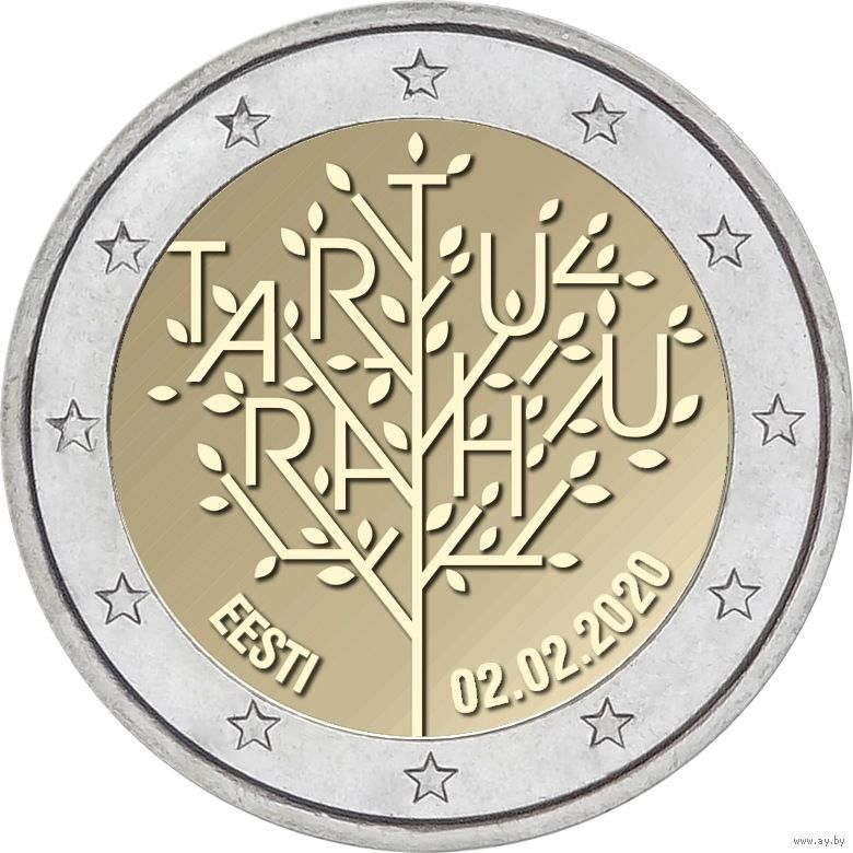 2 евро Эстония 2020 100-летие Тартуского мирного договора между РСФСР и Эстонией UNC из ролла