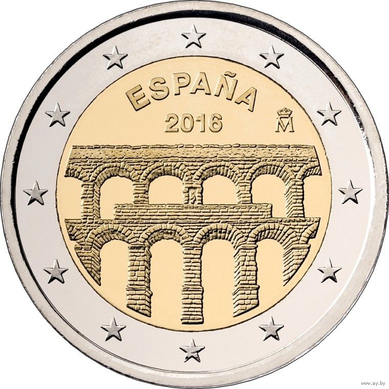 2 евро Испания 2016 Старинный город Сеговия с римским акведуком UNC из ролла