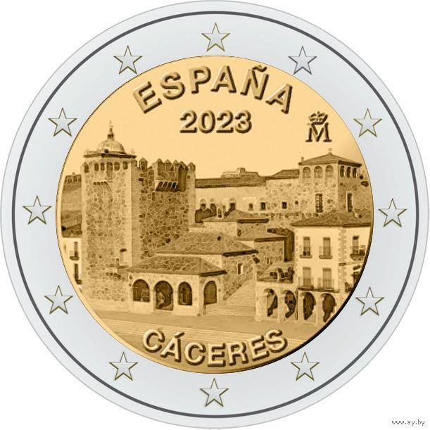 2 Евро Испания 2023 Касерес - наследие ЮНЕСКО UNC из ролла