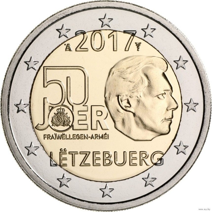 2 Евро Люксембург 2017 50-летие добровольной военной службы в Люксембурге UNC из ролла