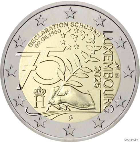 2 евро Люксембург 2025, Декларация Шумана, UNC из ролла
