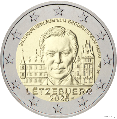 2 евро Люксембург 2025, вступление на престол, UNC из ролла