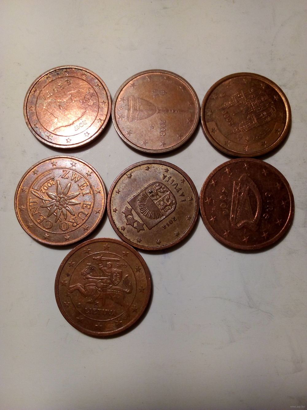2 евроцента Сборный лот . 7 шт. без повтора по странам.