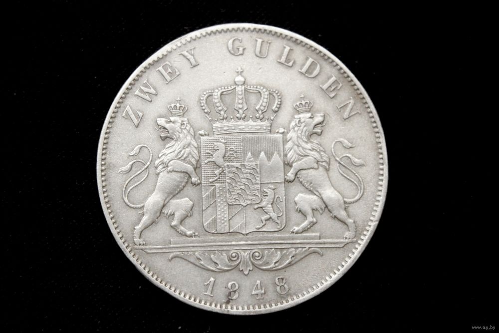 2 гульдена 1848 г. Бавария (Германия), Максимилиан II. Пореже!