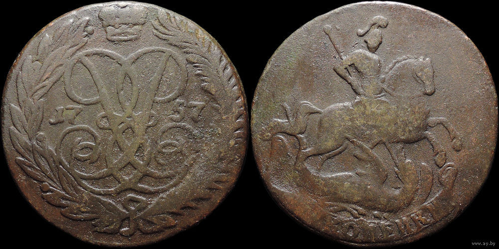 2 копейки 1757, Отличная! С 1 Рубля! Смотрите другие лоты!