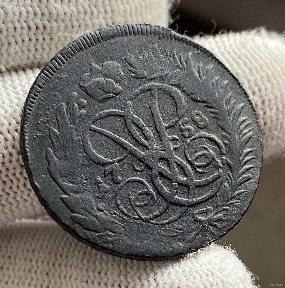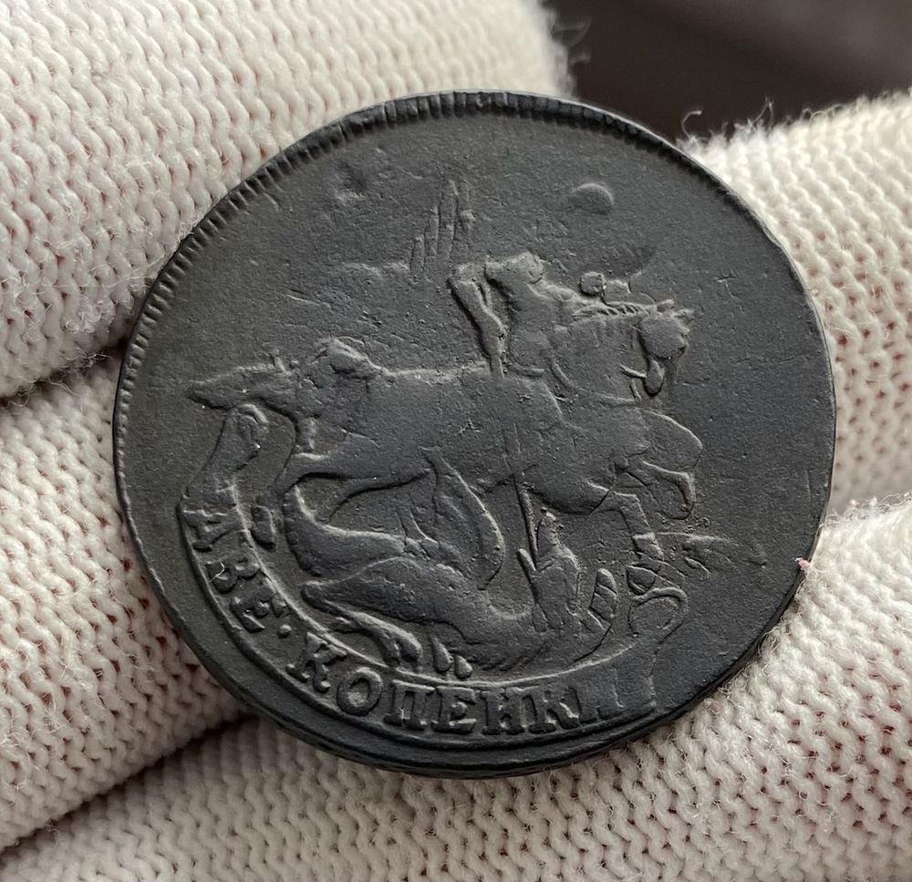 2 копейки 1758 Двойной перечекан! Всадник без головы!!!