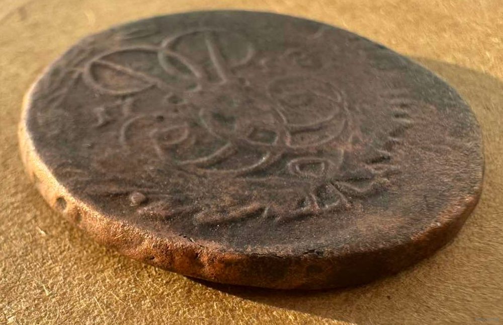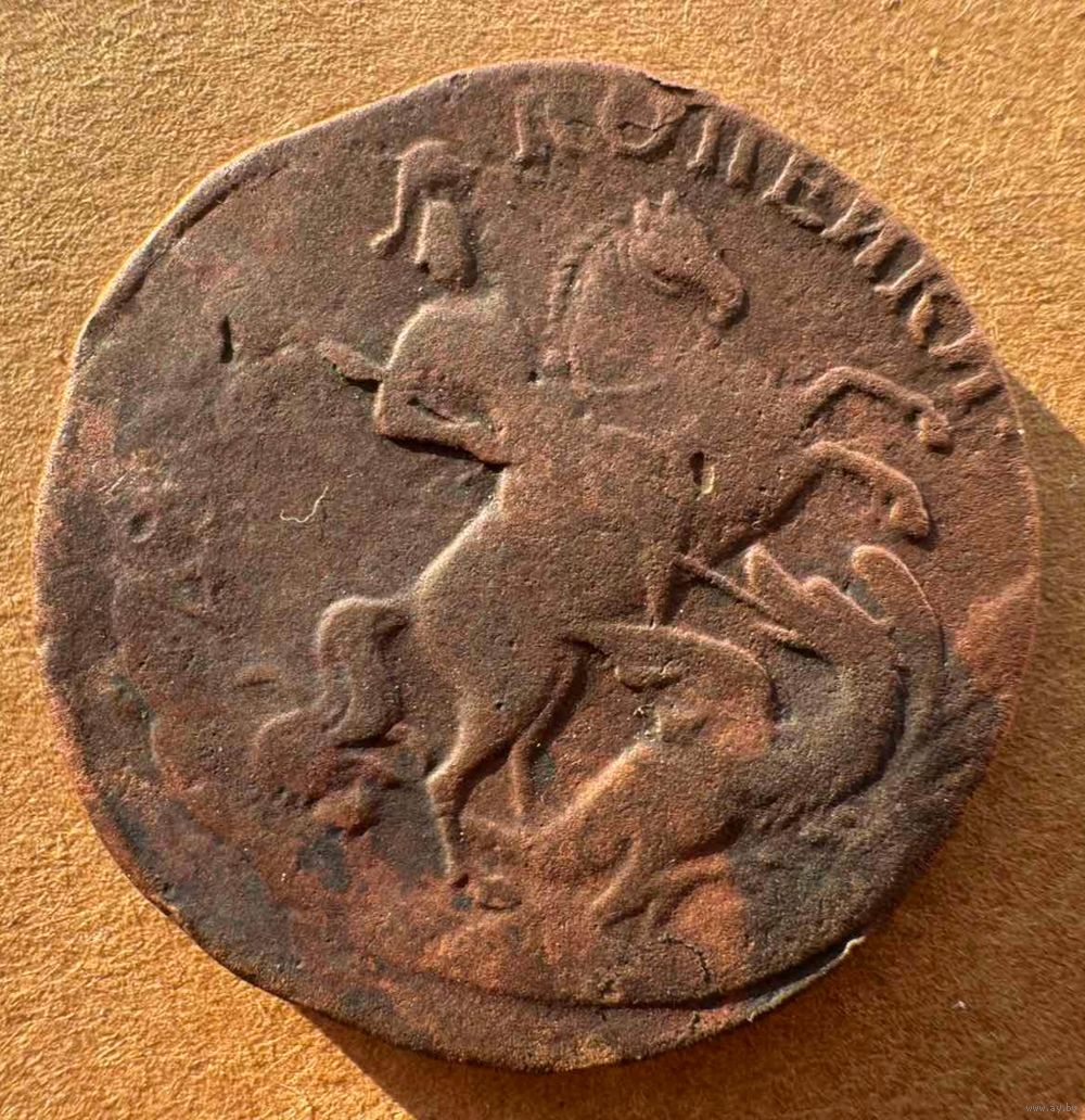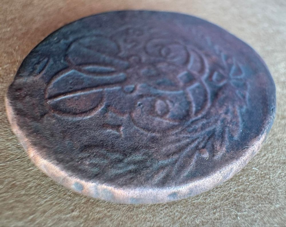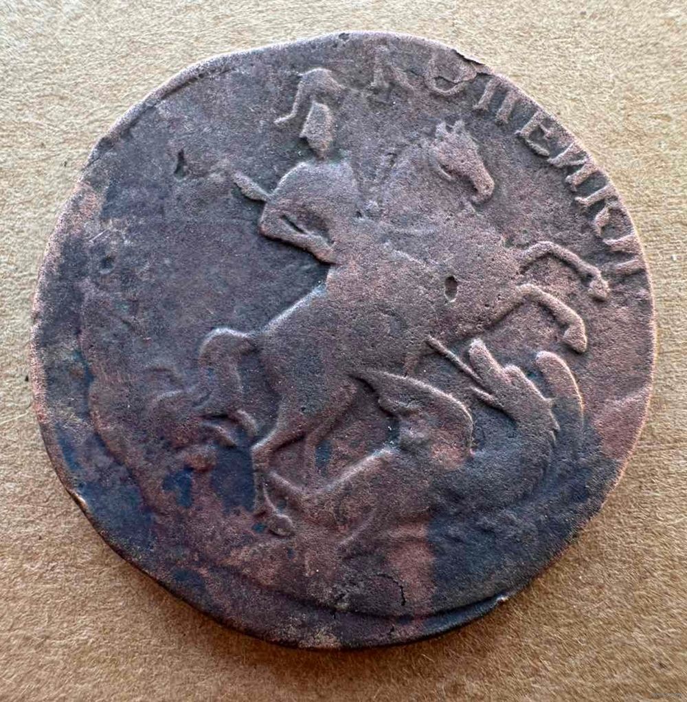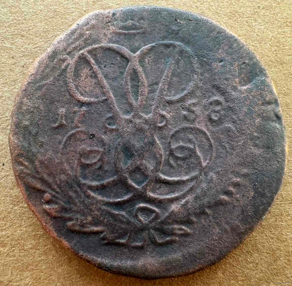 2 копейки 1758 номинал сверху, гурт надпись