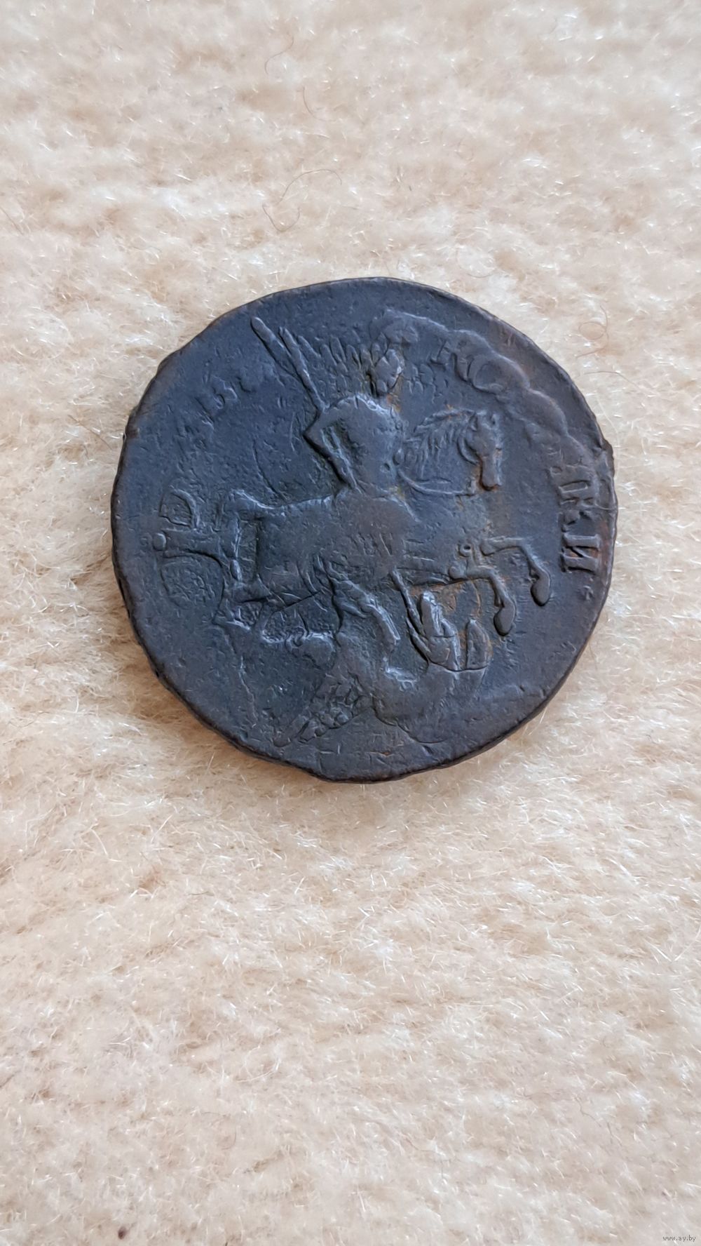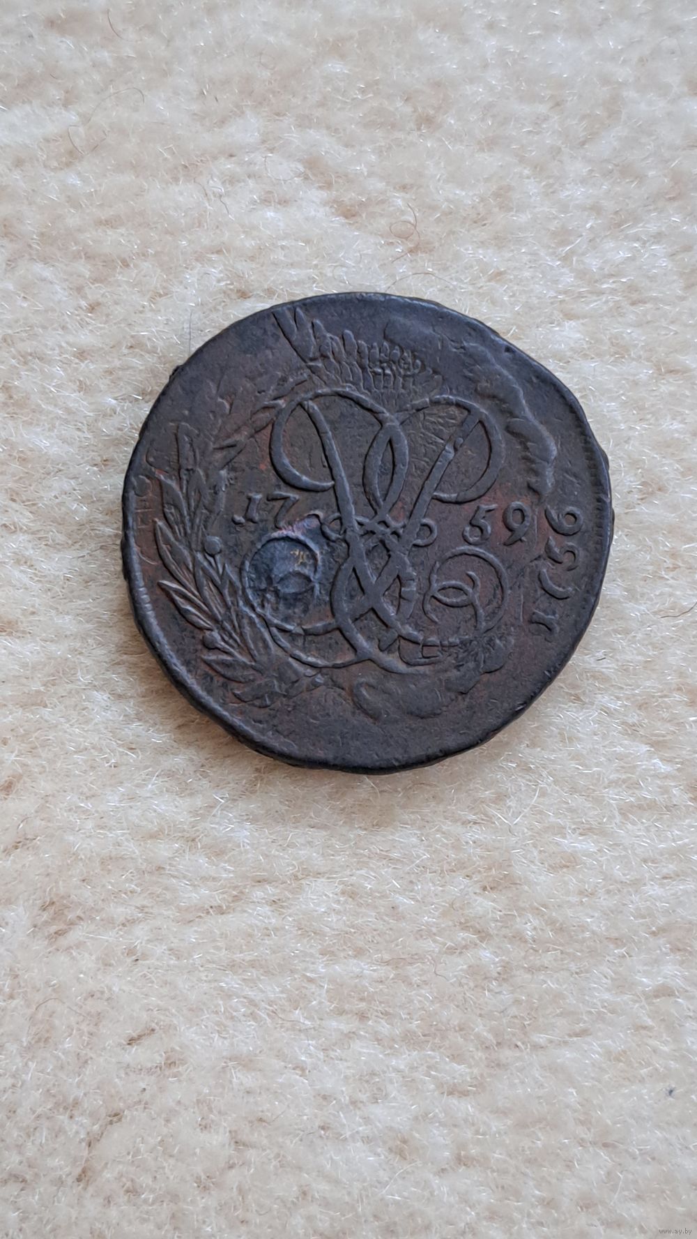 Супер монета - перечекан из " облачной " копейки 1756 года. Практически предыдущая монета видна на 50 %. Достойное пополнение коллекции. Смотрите также и на другие мои лоты. Всегда много интересного в продаже. КУПЛЮ ИКОНЫ. КУПЛЮ УГОЛЬНЫЕ САМОВАРЫ. КУПЛЮ СТАТУЭТКИ И ДРУГОЙ АНТИКВАРИАТ. КУПЛЮ ЧАСЫ КОРПУСА С МАРКИРОВКОЙ АУ. КУПЛЮ МОНЕТЫ, ЗНАКИ, НАГРАДЫ.