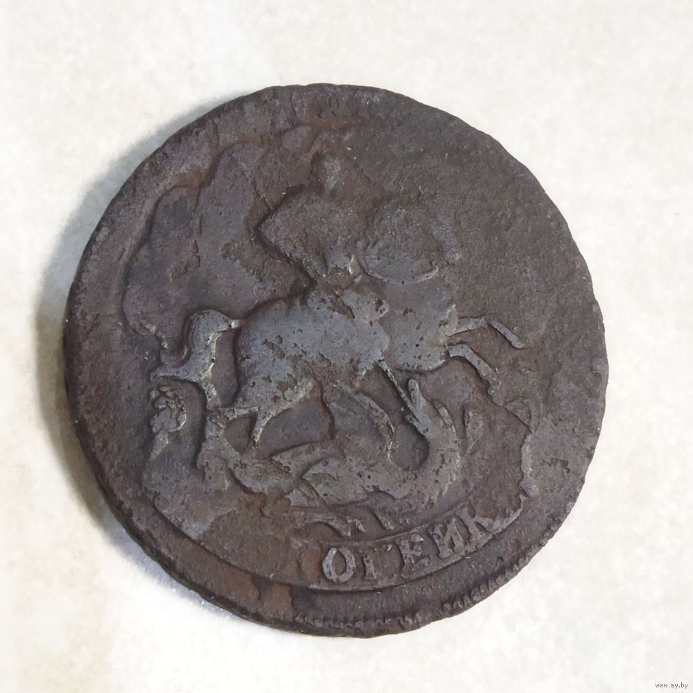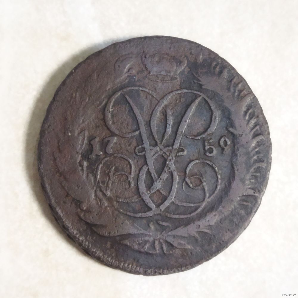 2 копейки 1759 РИ. Перечекан. Гурт сетка.