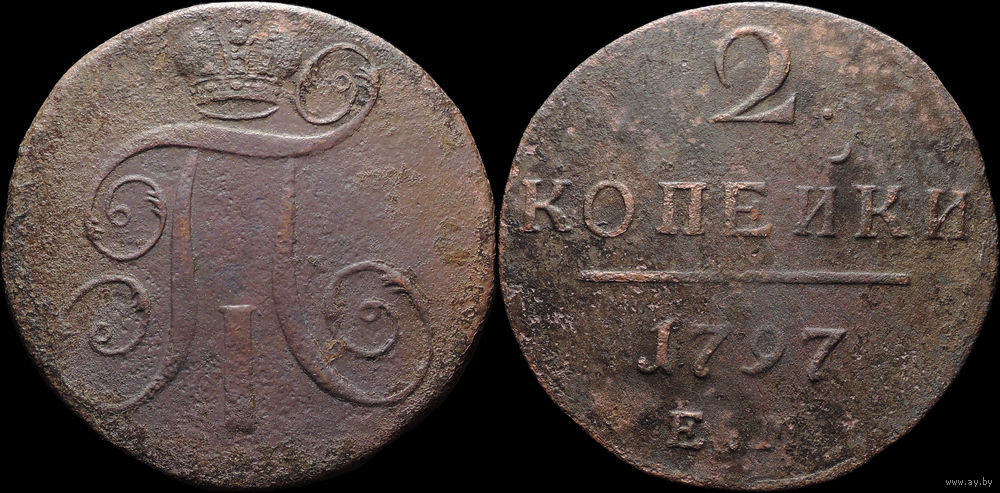 2 копейки 1797 ЕМ, Рельеф! С 1 Рубля! Смотрите другие лоты!