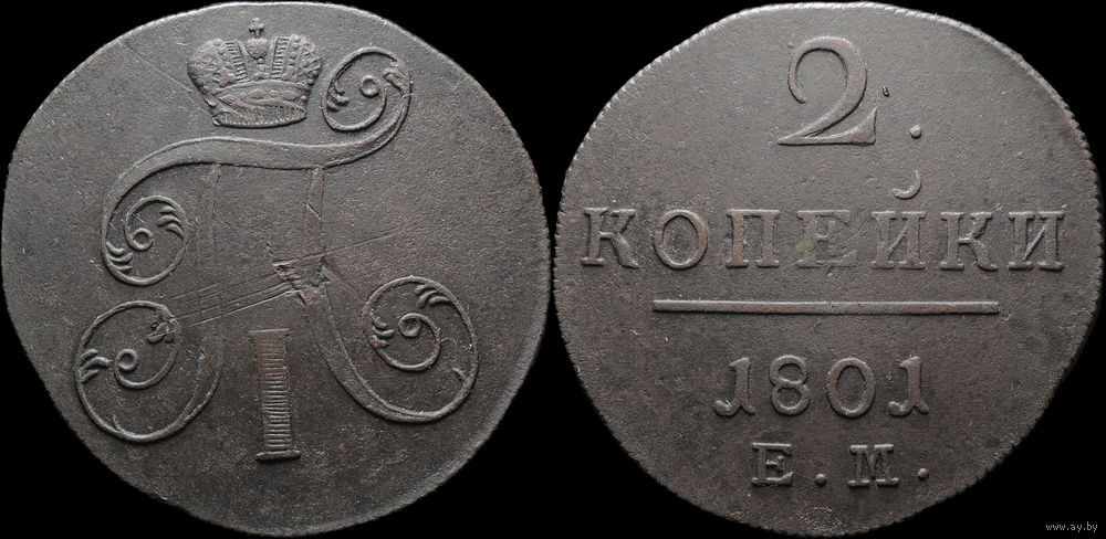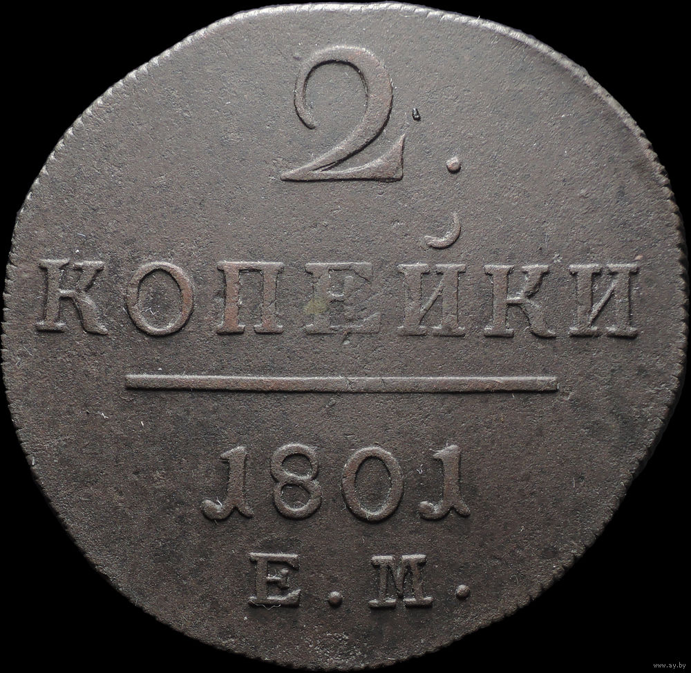 2 копейки 1801 ЕМ, Отличная! С 1 Рубля! Смотрите другие лоты!