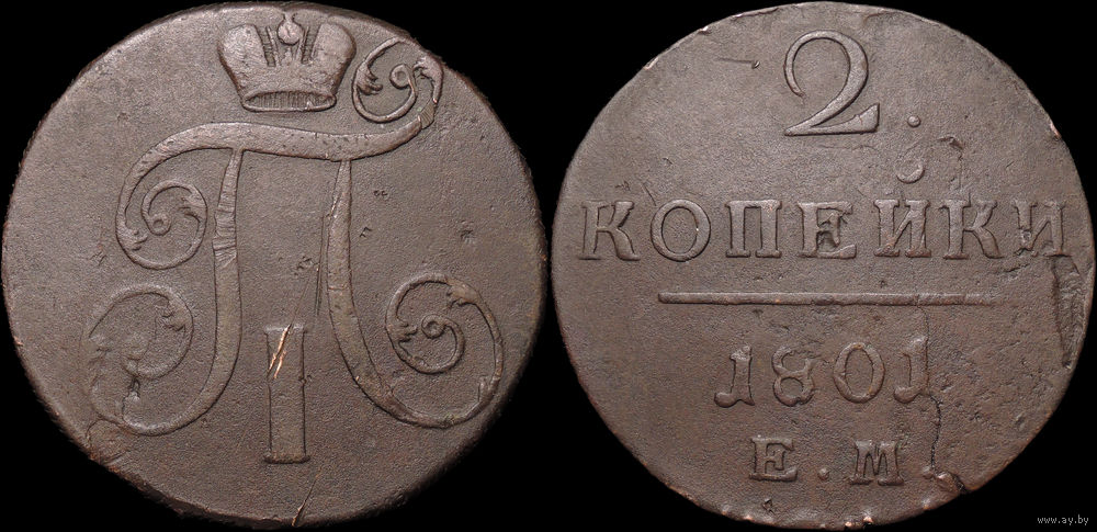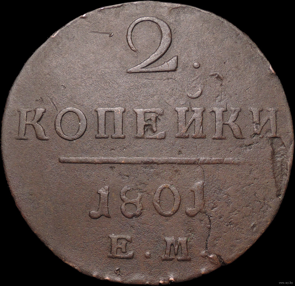 2 копейки 1801 ЕМ, Отличная! С 1 Рубля! Смотрите другие лоты!