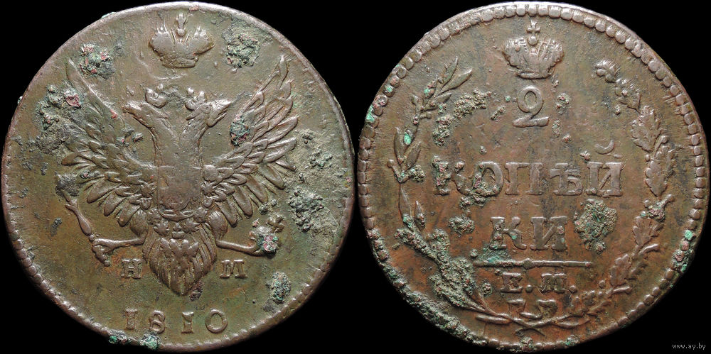 2 копейки 1810 ЕМ НМ, Отличная! С 1 Рубля! Смотрите другие лоты!