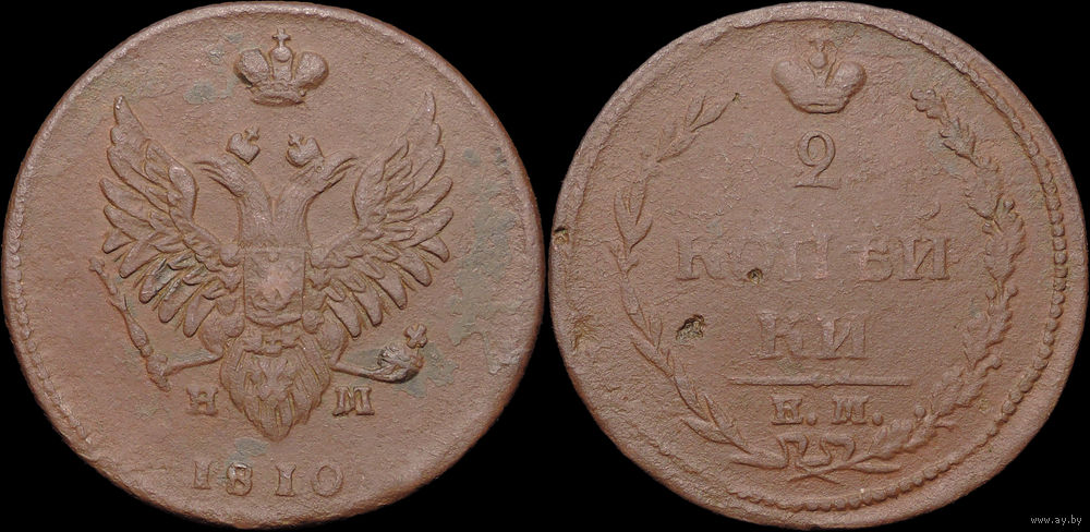 2 копейки 1810 ЕМ НМ, Отличная! С 1 Рубля! Смотрите другие лоты!