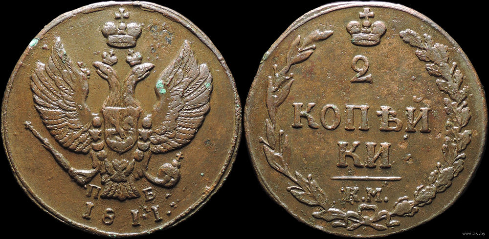 2 копейки 1811 КМ ПБ, Отличная! С 1 Рубля! Смотрите другие лоты!