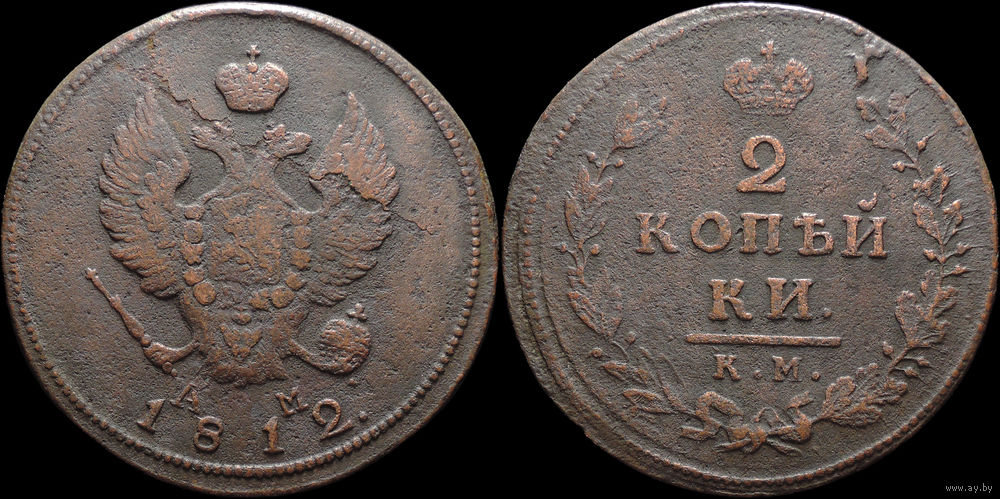 2 копейки 1812 КМ АМ, Нечастая! С 1 Рубля! Смотрите другие лоты!