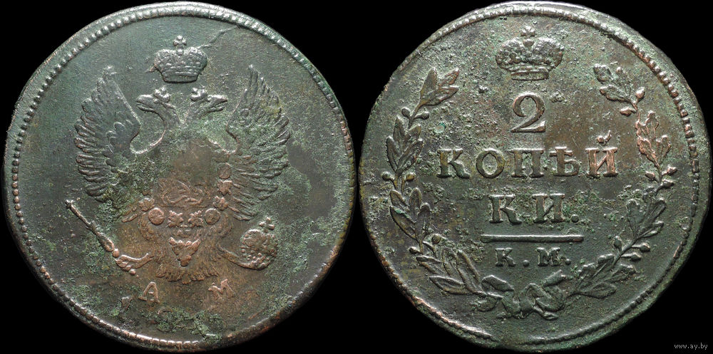 2 копейки 1812 КМ АМ, Отличная! Непрочекан! С 1 Рубля! Смотрите другие лоты!