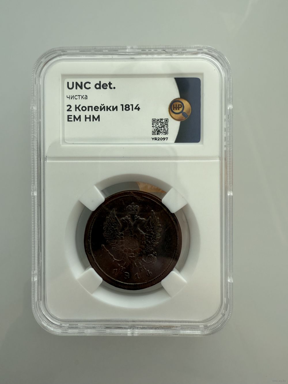 2 копейки 1814 EM HM, в слабе Национального Нумизматического Реестра (ННР) Москва, Российская Федерация, что подтверждает подлинность предмета! Состояние предмета UNC det. чистка!