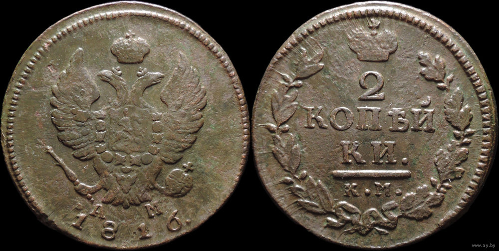 2 копейки 1816 КМ АМ, Отличная! С 1 Рубля! Смотрите другие лоты!