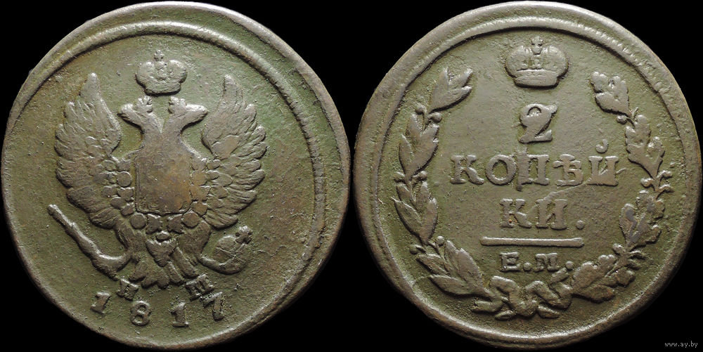 2 копейки 1817 ЕМ НМ, С 1 Рубля! Смотрите другие лоты!