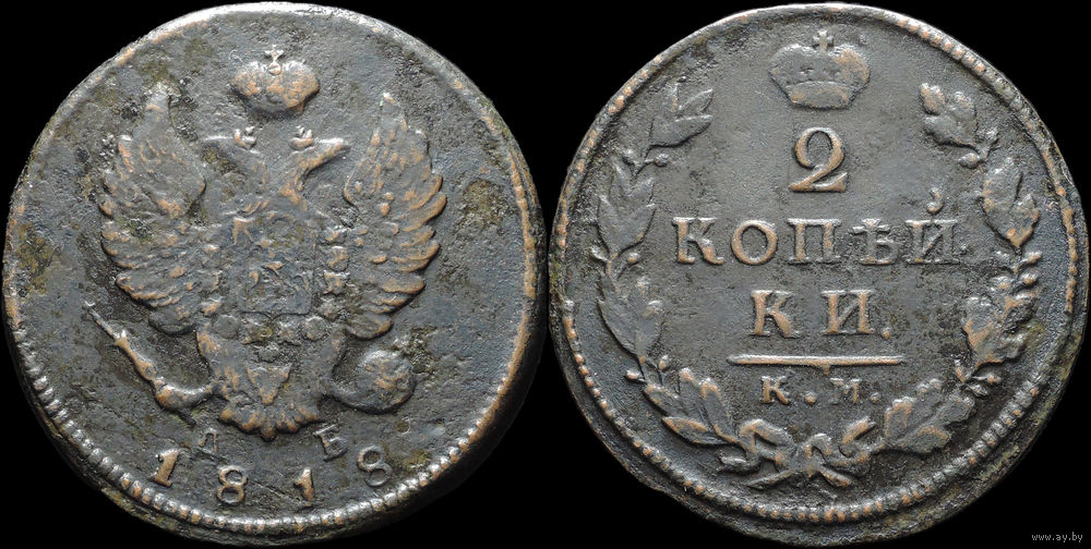 2 копейки 1818 КМ АБ, Нечастая! С 1 Рубля! Смотрите другие лоты!