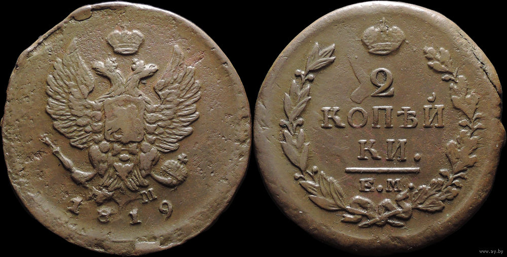 2 копейки 1819 ЕМ НМ, Отличная! С 1 Рубля! Смотрите другие лоты!