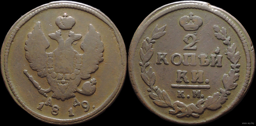 2 копейки 1819 КМ АД, Отличная! С 1 Рубля! Смотрите другие лоты!