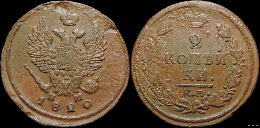 2 копейки 1820 ЕМ НМ, Отличная! С 1 Рубля! Смотрите другие лоты!