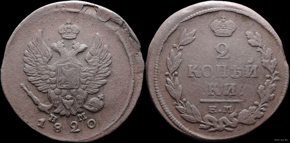 2 копейки 1820 ЕМ НМ, Отличная! С 1 Рубля! Смотрите другие лоты!