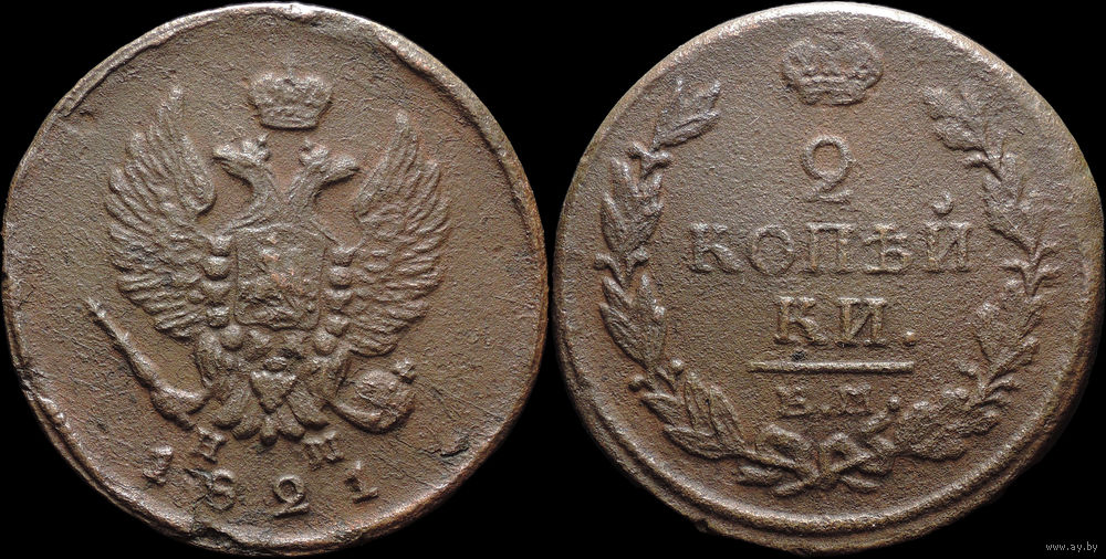 2 копейки 1821 ЕМ НМ, С 1 Рубля! Смотрите другие лоты!