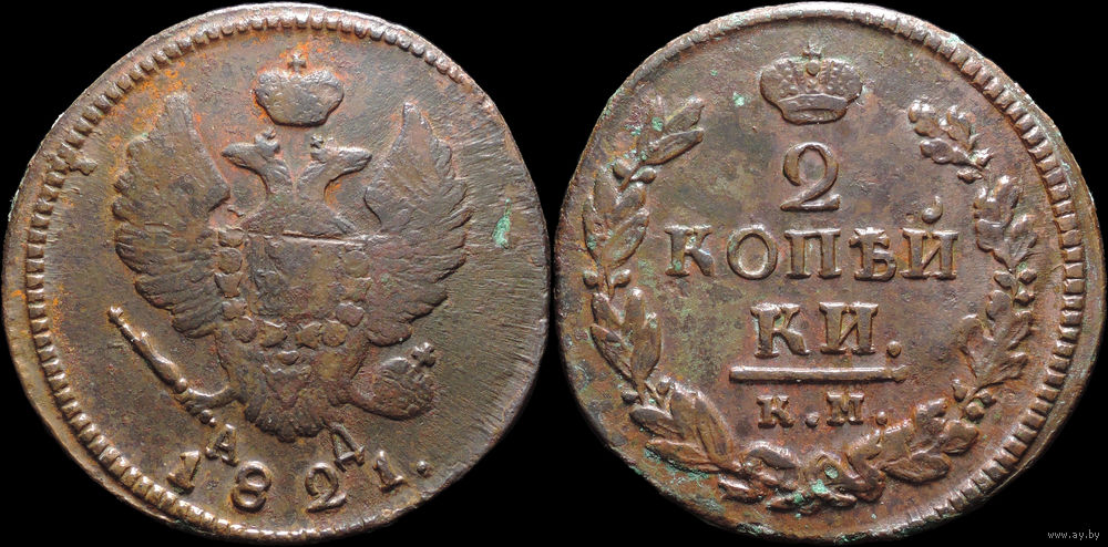 2 копейки 1821 КМ АД, Отличная! Нечастая! С 1 Рубля! Смотрите другие лоты!