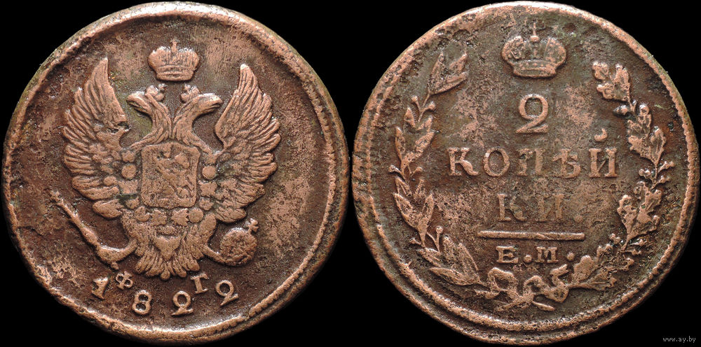 2 копейки 1822 ЕМ ФГ, Нечастая! С 1 Рубля! Смотрите другие лоты!