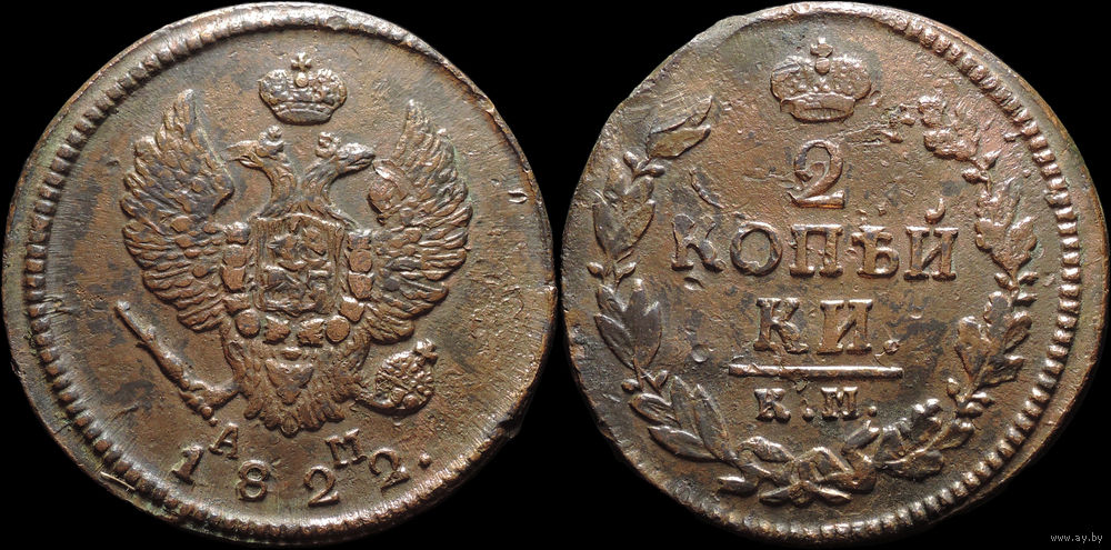 2 копейки 1822 КМ АМ, Отличная! С 1 Рубля! Смотрите другие лоты!