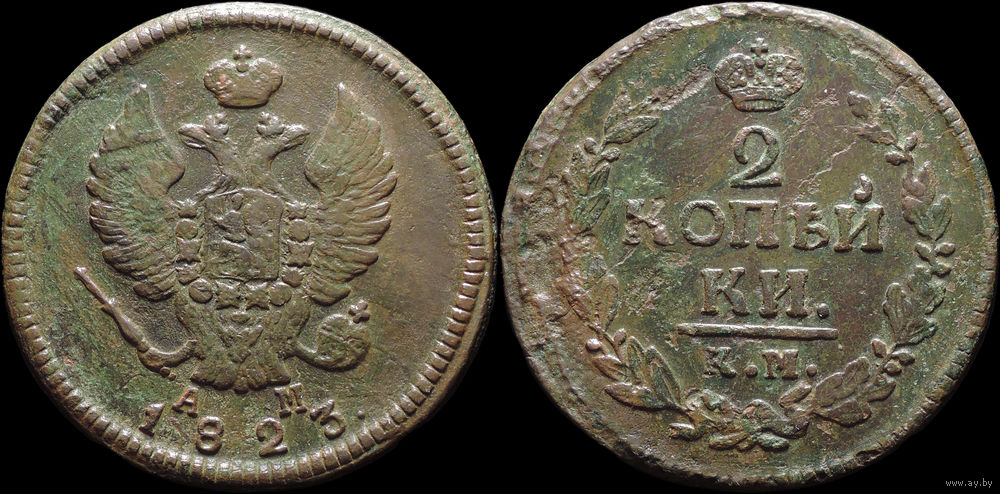2 копейки 1823 КМ АМ, Отличная! С 1 Рубля! Смотрите другие лоты!