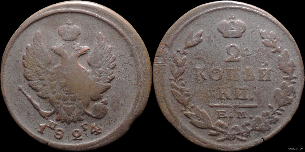 2 копейки 1824 ЕМ ФГ, Нечастая! С 1 Рубля! Смотрите другие лоты!