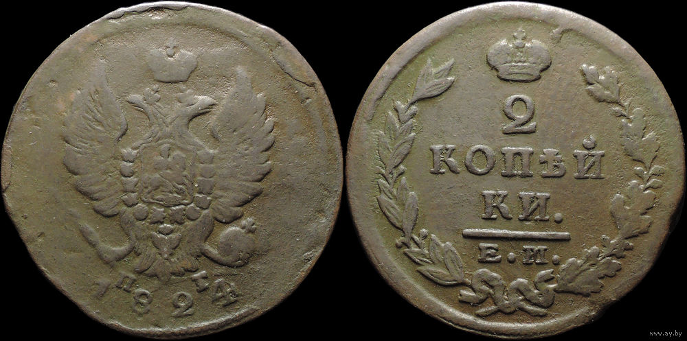 2 копейки 1824 ЕМ ПГ, Нечастая! С 1 Рубля! Смотрите другие лоты!