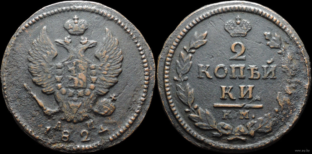 2 копейки 1824 КМ АМ, Нечастая! С 1 Рубля! Смотрите другие лоты!