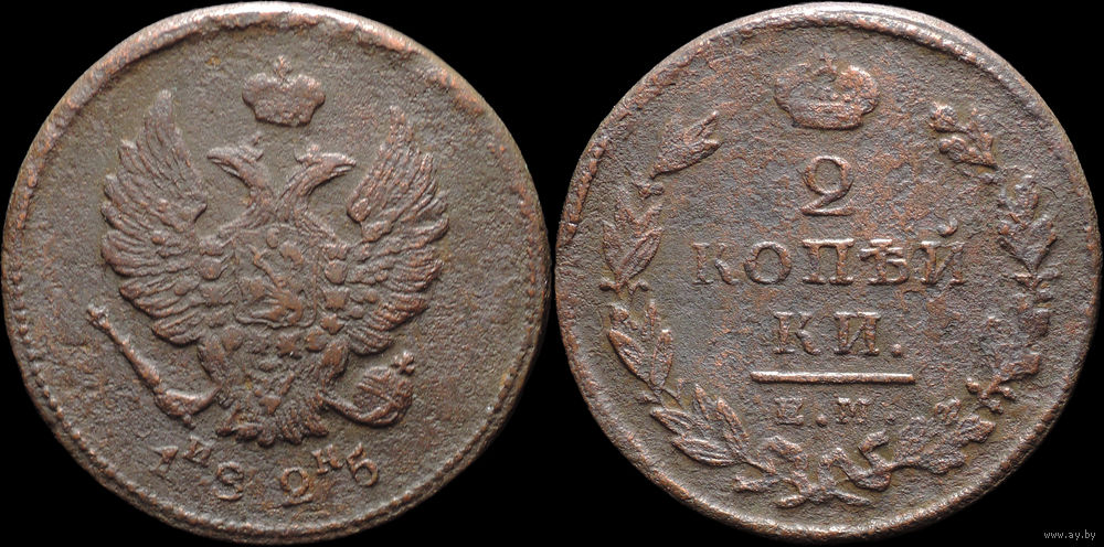 2 копейки 1825 ЕМ ИК, Нечастая! С 1 Рубля! Смотрите другие лоты!